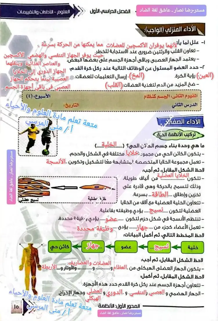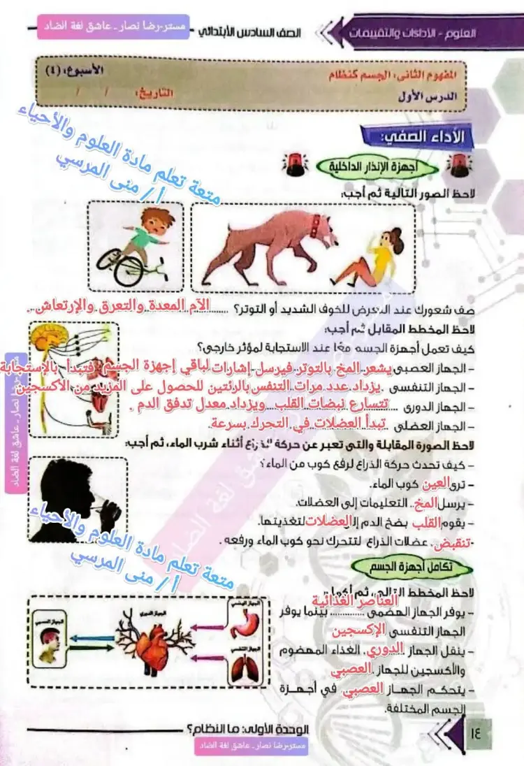 حل الأداء الصفي والواجب المنزلي والتقييم الأسبوعي الرابع علوم للصف السادس الابتدائي 2026