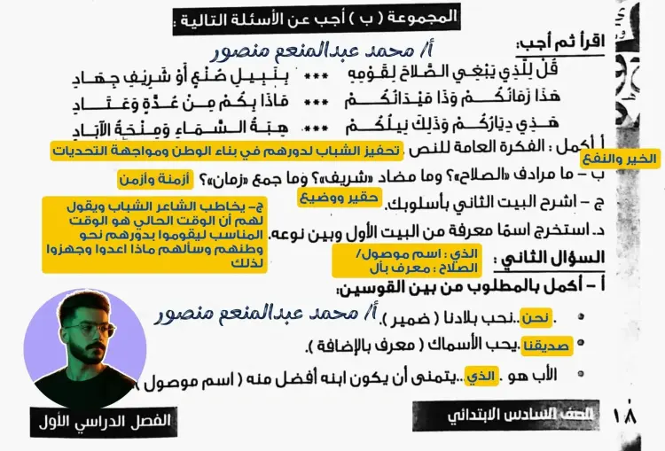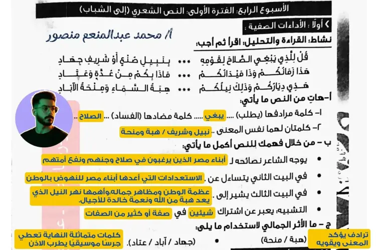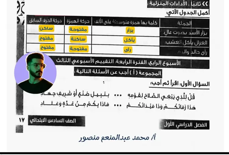 يشمل حل الأداء الصفي عربي سادسة ابتدائي الأسبوع الرابع ترم أول 2026 على عدد من الأسئلة والإجابات والتي منها ما يلي: