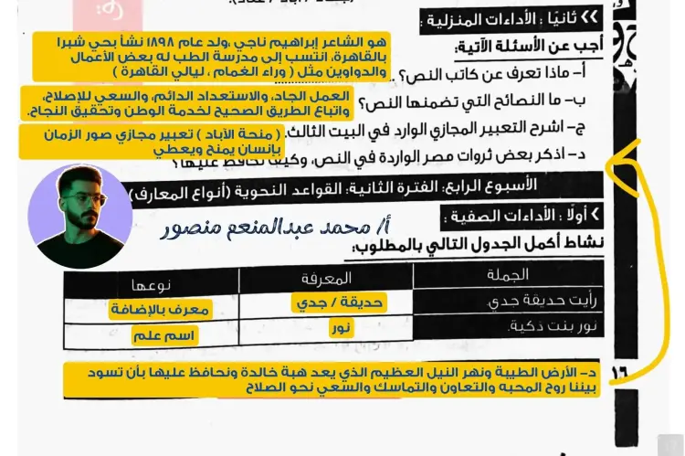 لمتابعة باقي حل الأداء الصفي وواجب وتقييم الأسبوع الرابع عربي للصف السادس الابتدائي ترم أول 2026 يمكنك الإطلاع على الصور التالية:
