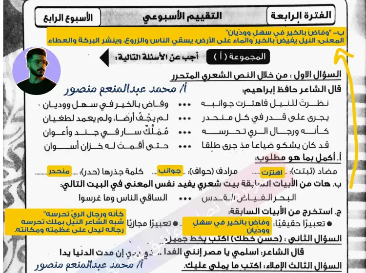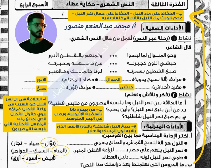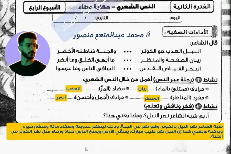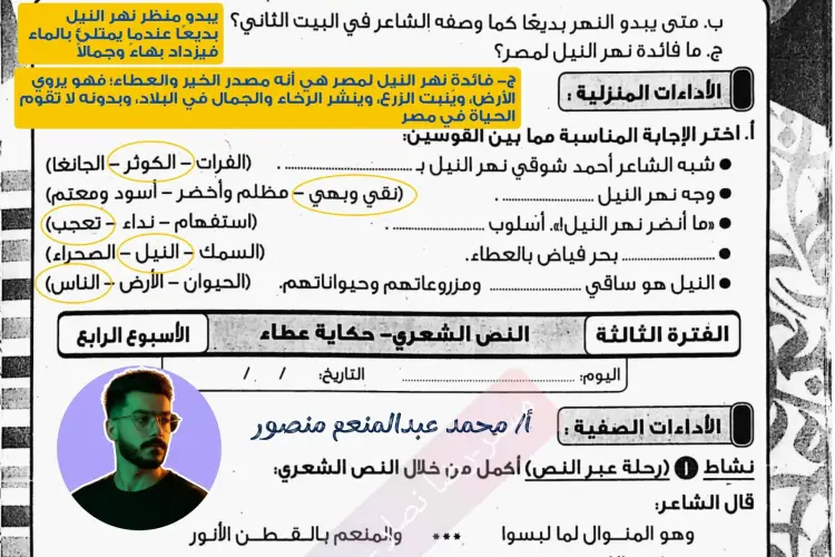 لمتابعة باقي أسئلة وحل الأداء الصفي وواجب وتقييم الأسبوع الرابع عربي للصف الخامس الابتدائي ترم أول 2026 يمكنك الإطلاع على الأسئلة والإجابات في الصور التالية: