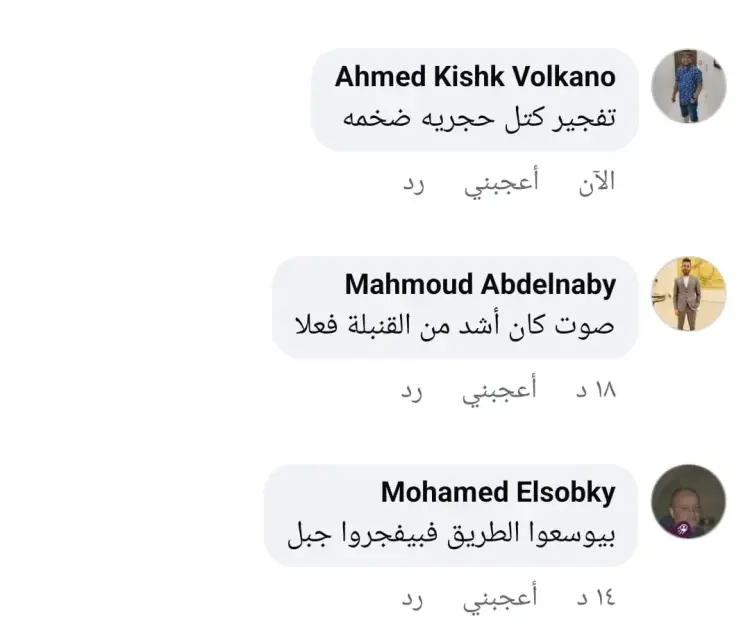ودعم هذا التفسير تعليقات عدد من المستخدمين، حيث كتب أحدهم موضحاً: «بيوسعوا الطريق فيفجروا جبل»، وأيده آخر قائلا: «تفجير كتل حجرية ضخمة».