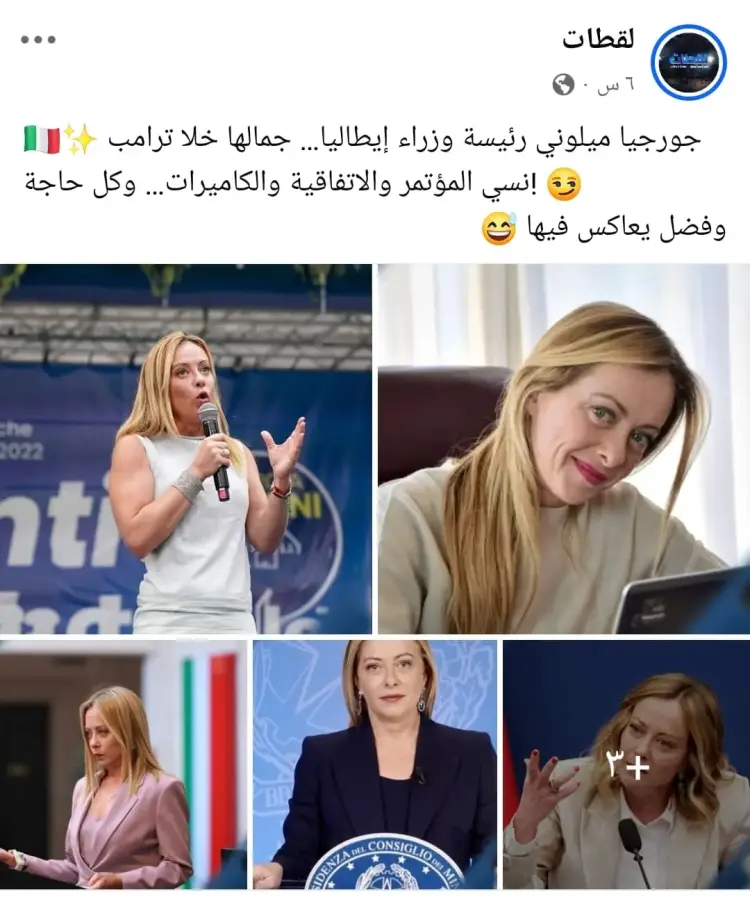 شهدت منصات التواصل الاجتماعي تداولا لمنشورات تستعرض مواقف جمعت رئيسة الوزراء الإيطالية بزعماء دوليين، مرفقة بتعليقات ساخرة تفسر هذه اللحظات بطريقة غير تقليدية، بعيدا عن بروتوكولات السياسة الصارمة.