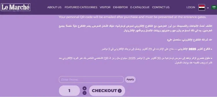 وبعد الدخول إلى الموقع، يقوم المستخدم باختيار كتالوج الدورة الحالية للمعرض وإتمام خطوات الشراء والدفع الإلكتروني.