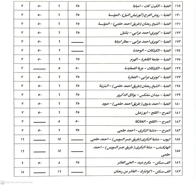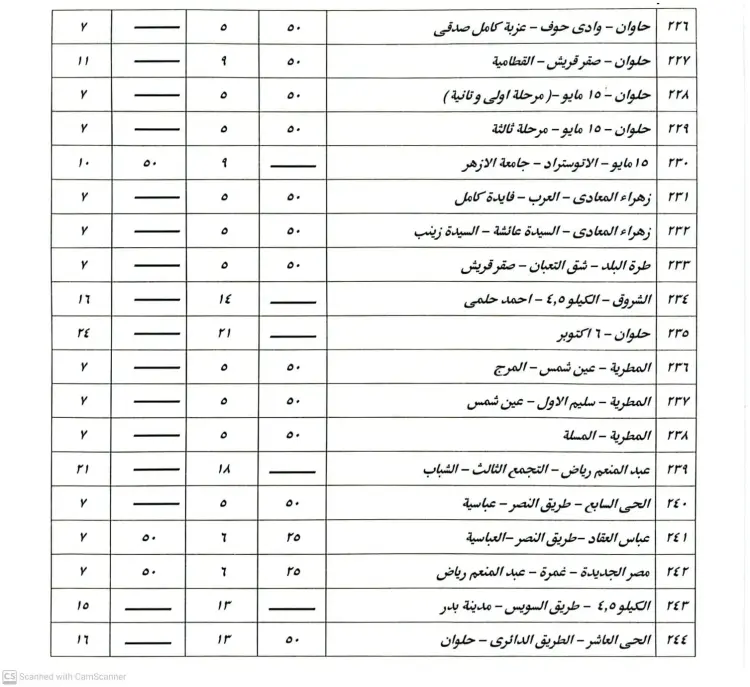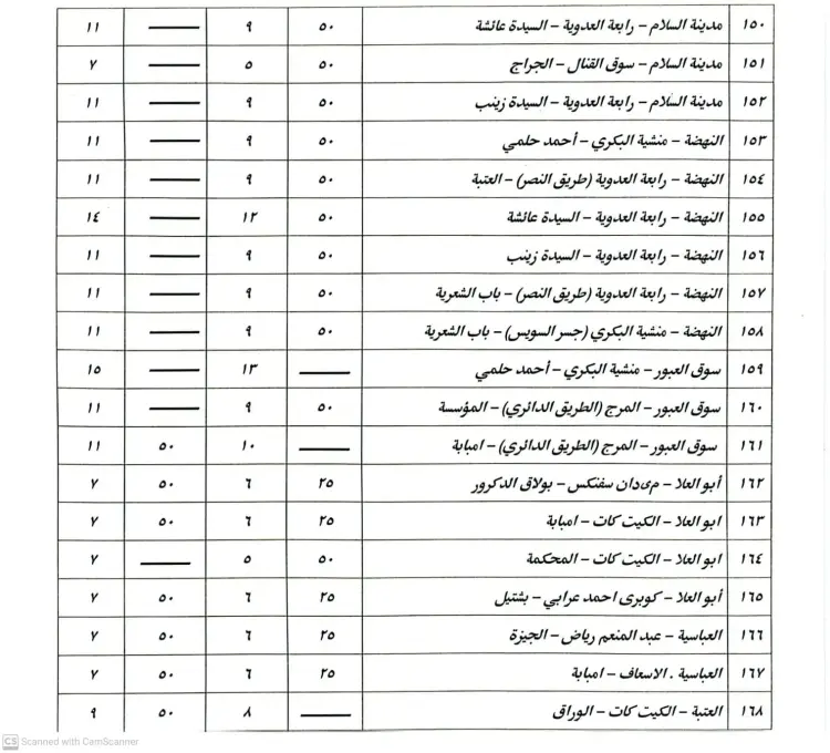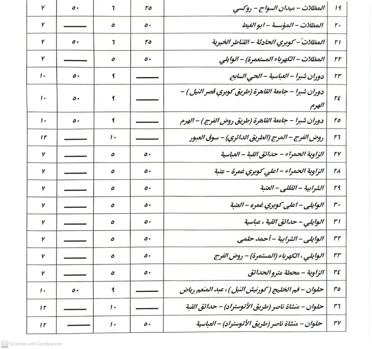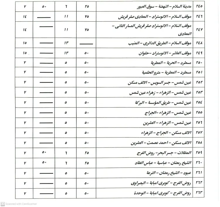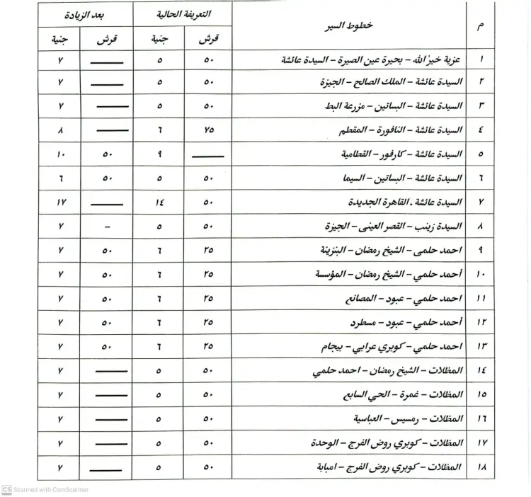 زادت تعريفة خط «أحمد حلمي - الشيخ رمضان - المؤسسة» من 6.25 إلى 7.50 جنيهات.