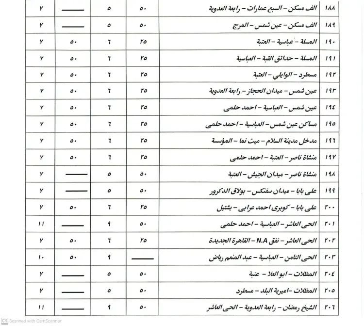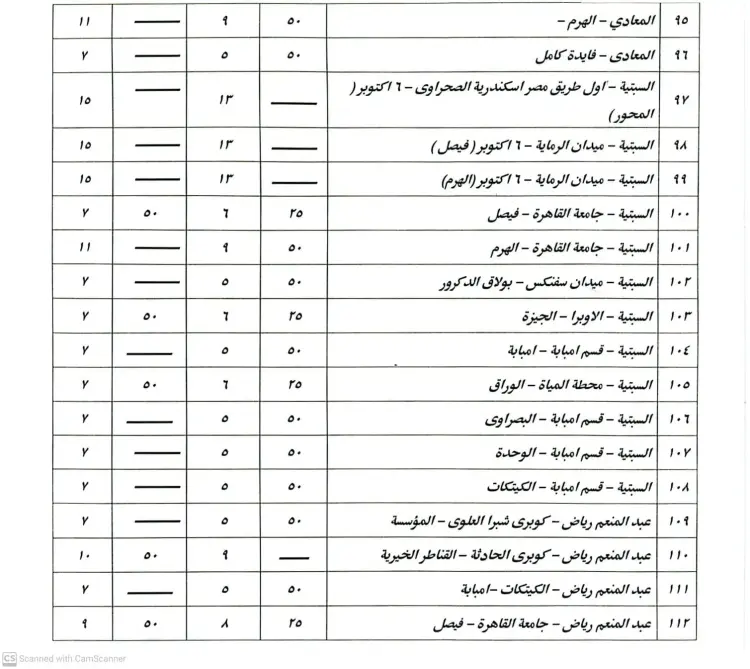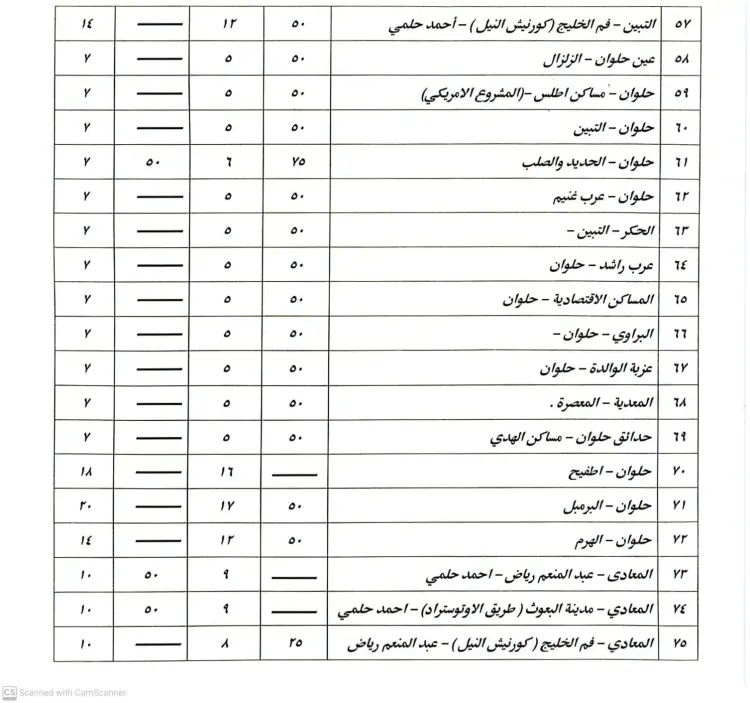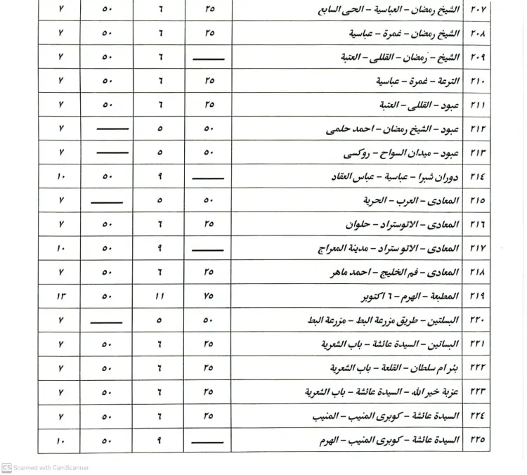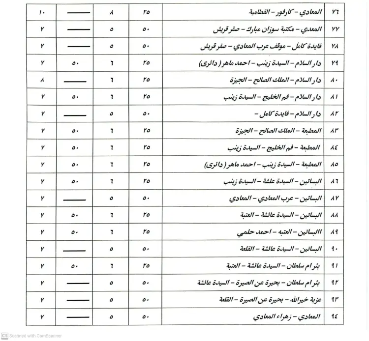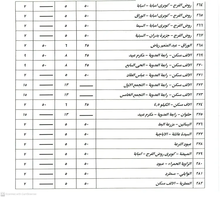 زادت تعريفة خط «أحمد حلمي - الشيخ رمضان - المؤسسة» من 6.25 إلى 7.50 جنيهات.