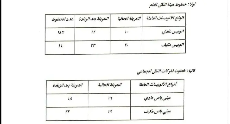 وأضاف أنه تم التنسيق الكامل مع المحافظات المجاورة لتوحيد التعريفة على الخطوط المشتركة، منعا لأي محاولة لاستغلال الركاب.