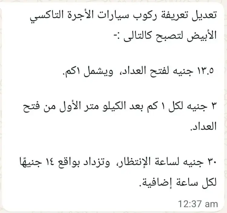 فتح العداد: 13.5 جنيه (يشمل الكيلومتر الأول).