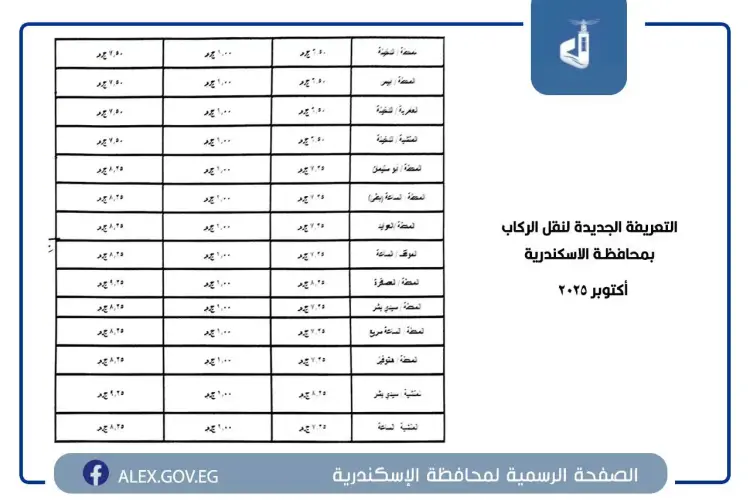 تعريفة المواصلات الجديدة بالإسكندرية 2025 بعد الزيادة