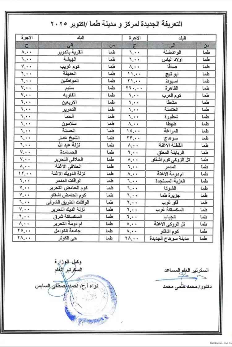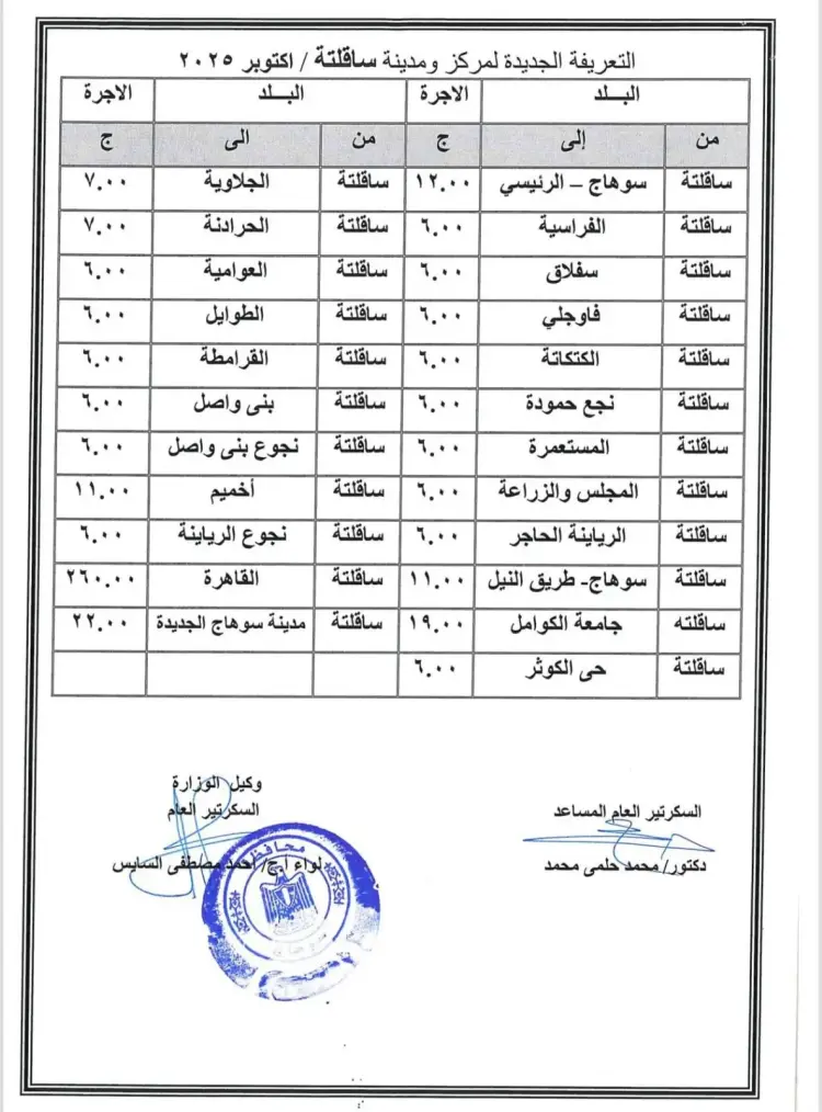 تعريفة الركوب الجديدة بسوهاج بعد زيادة أكتوبر 2025