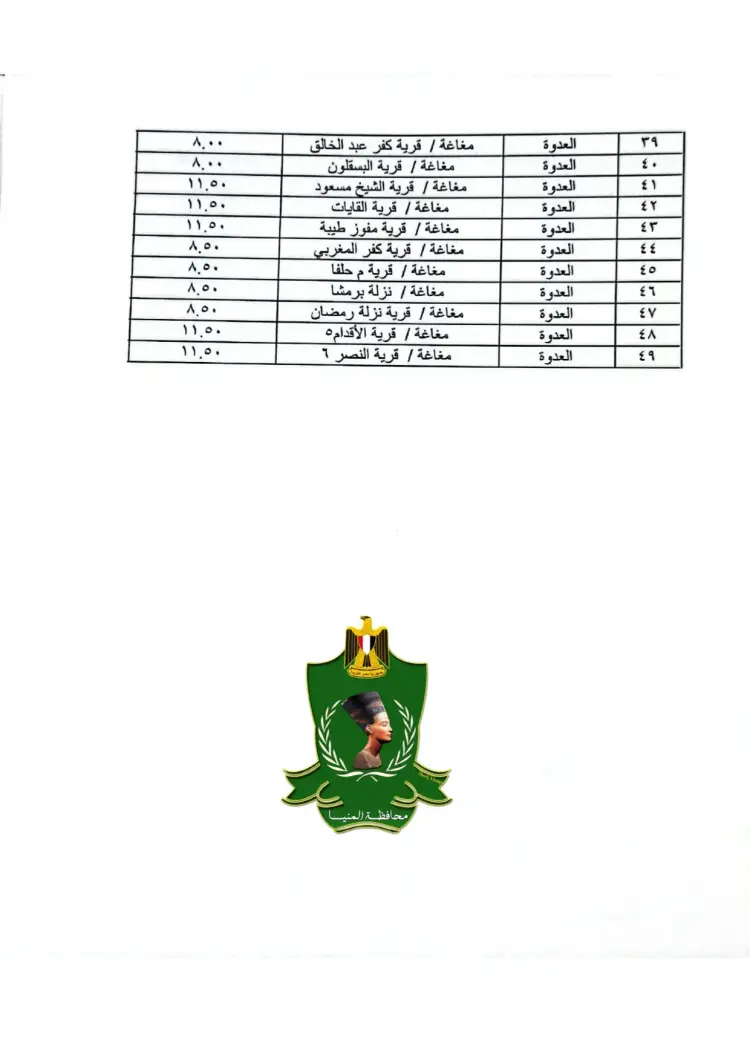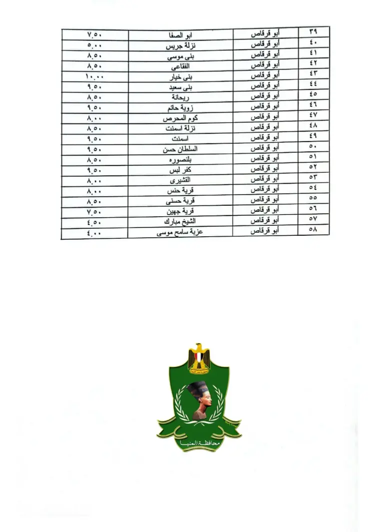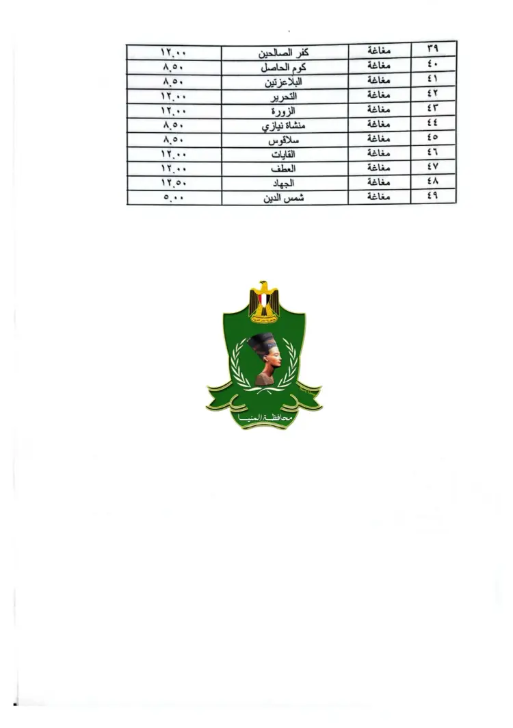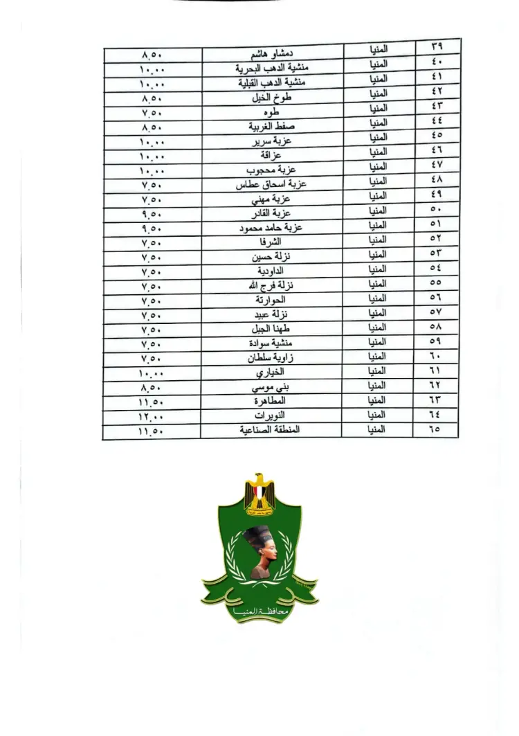 - المنيا - نزلة شادي: ١٢.٠٠ جنيهًا