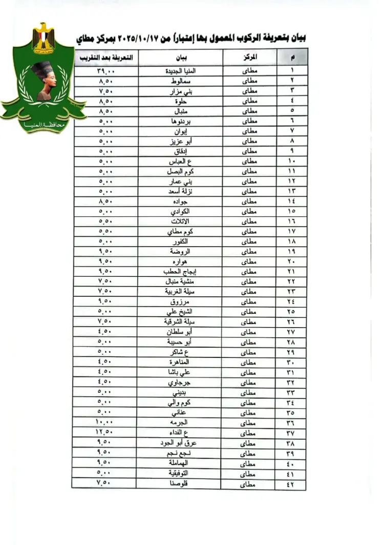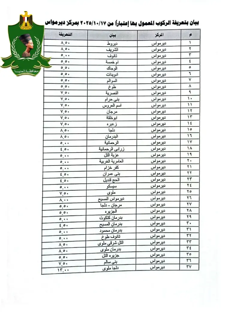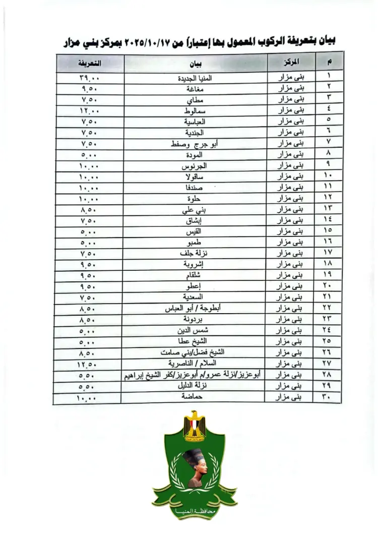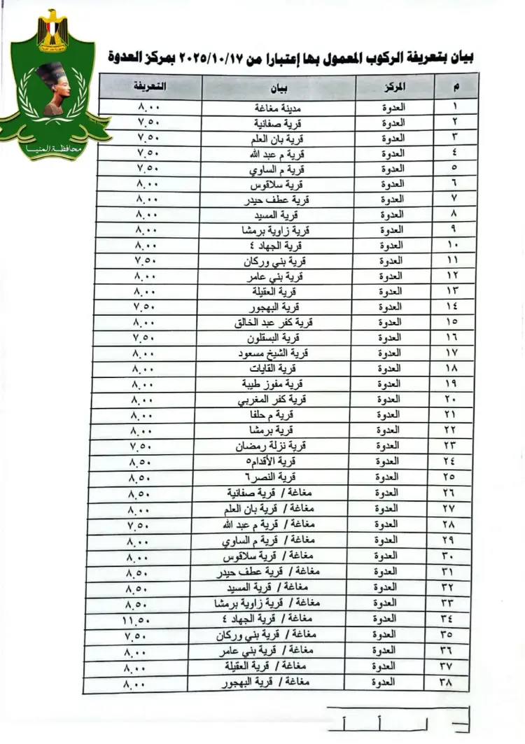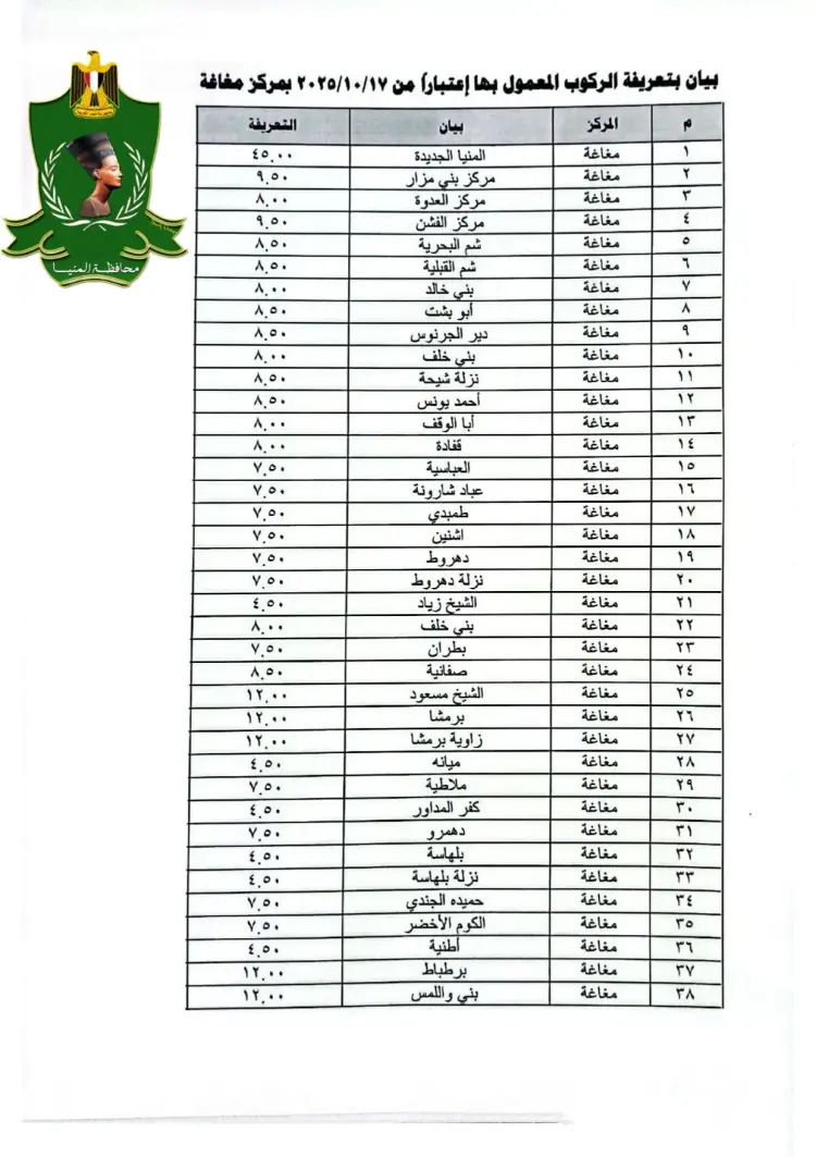 سعر أجرة الركوب الجديدة بالمنيا 2025