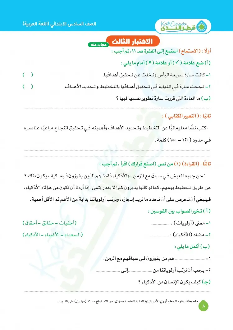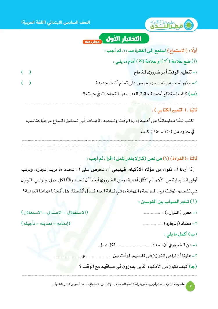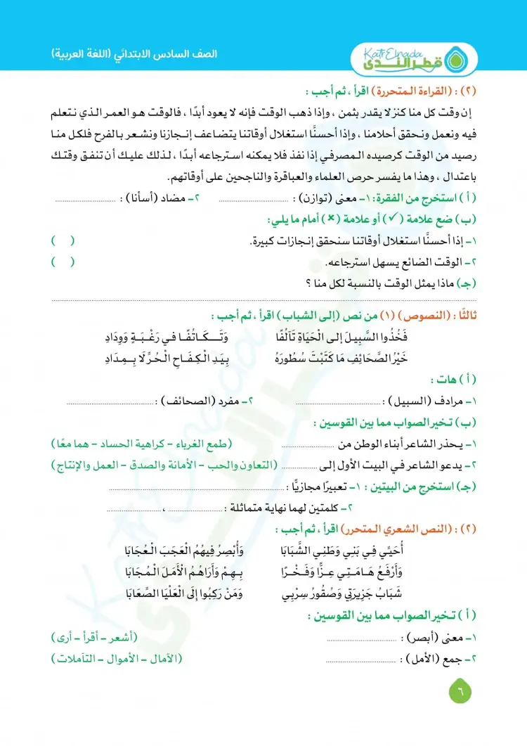 جاءت أسئلة امتحانات شهر أكتوبر عربي الصف السادس الابتدائي 2025 على النحو التالي:
