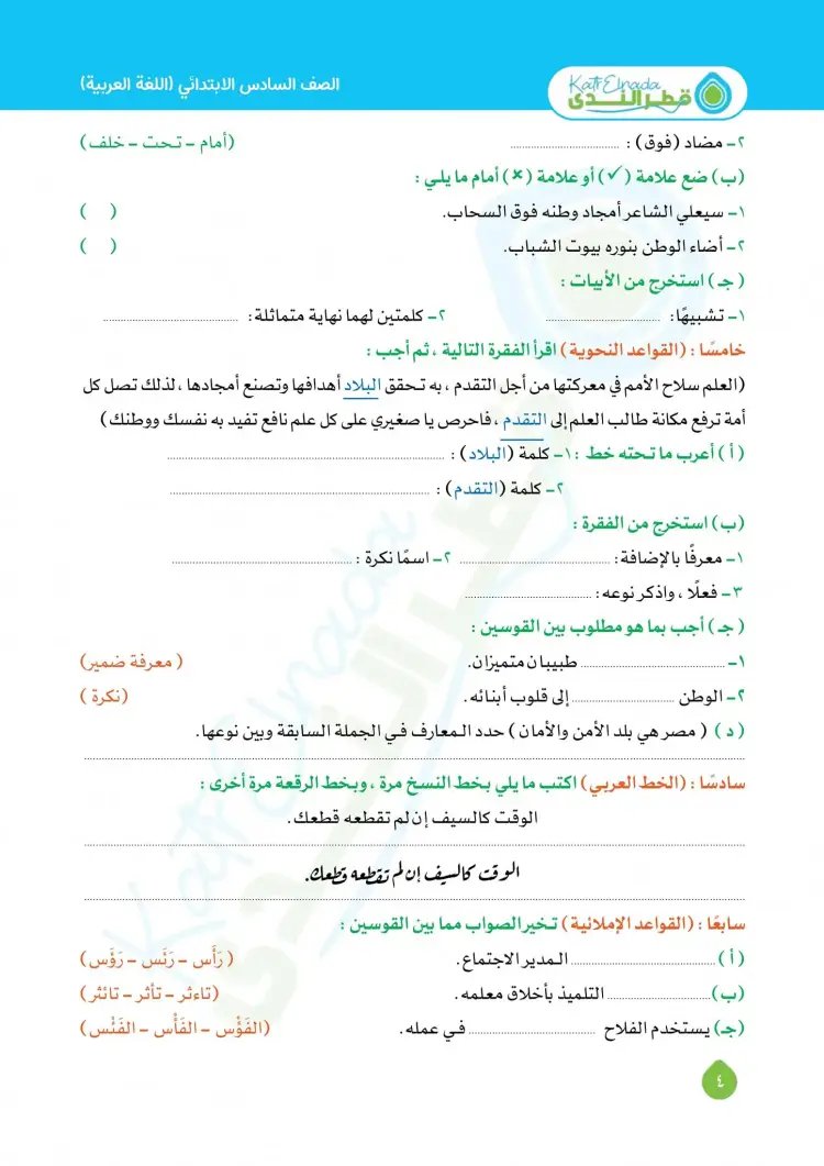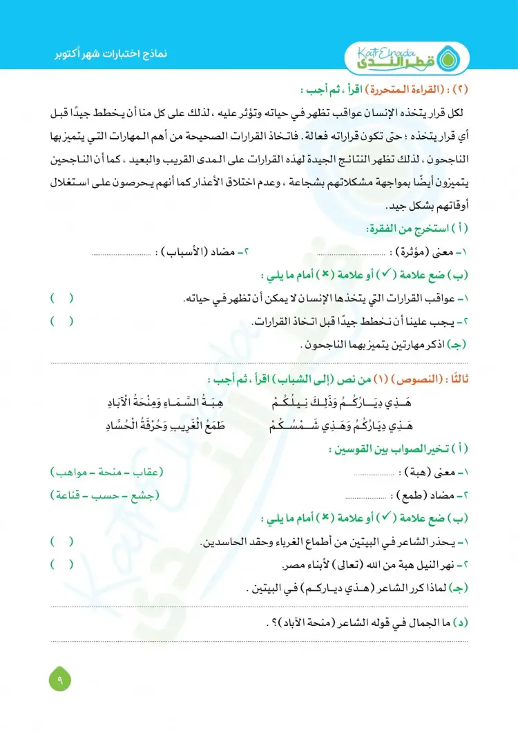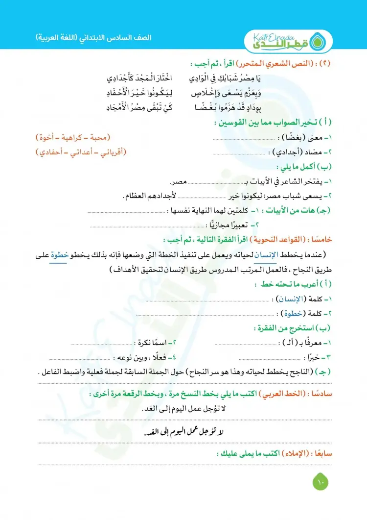 نتطرق في السطور التالية إلى أسئلة نماذج امتحانات شهر أكتوبر عربي الصف السادس الابتدائي 2025 بالإجابات.