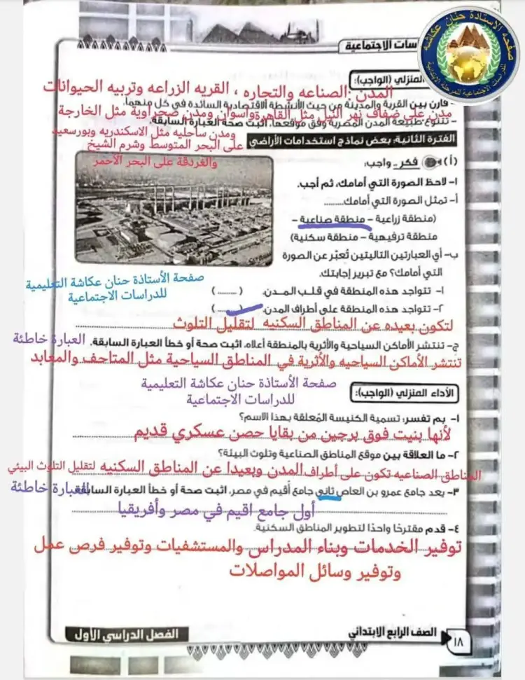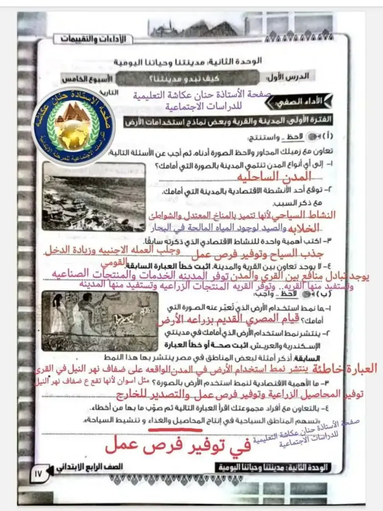 ينشر شبابيك حل الأداء الصفي وواجب وتقييم الأسبوع الخامس دراسات للصف الرابع الابتدائي ترم أول 2026.