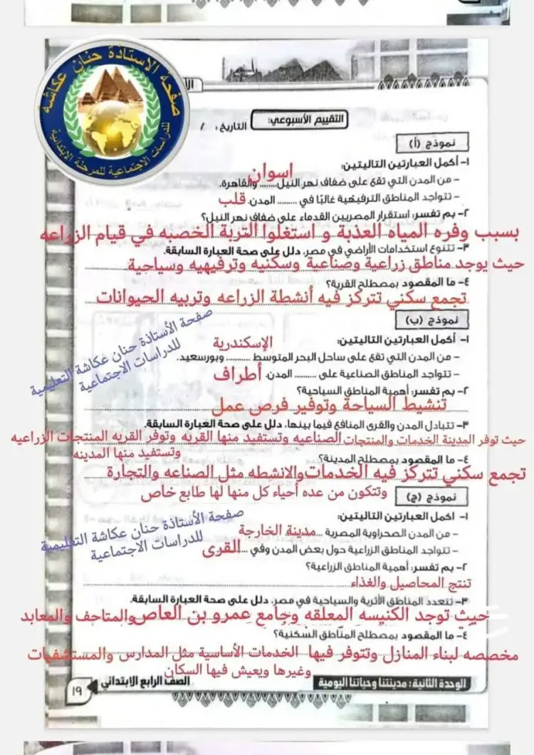 نتطرق في السطور التالية إلى إجابات تقييم الأسبوع الخامس دراسات للصف الرابع الابتدائي الترم الأول، ليتعرف الطلاب على مدى صحة أو خطأ الإجابات التي قاموا بتدوينها.