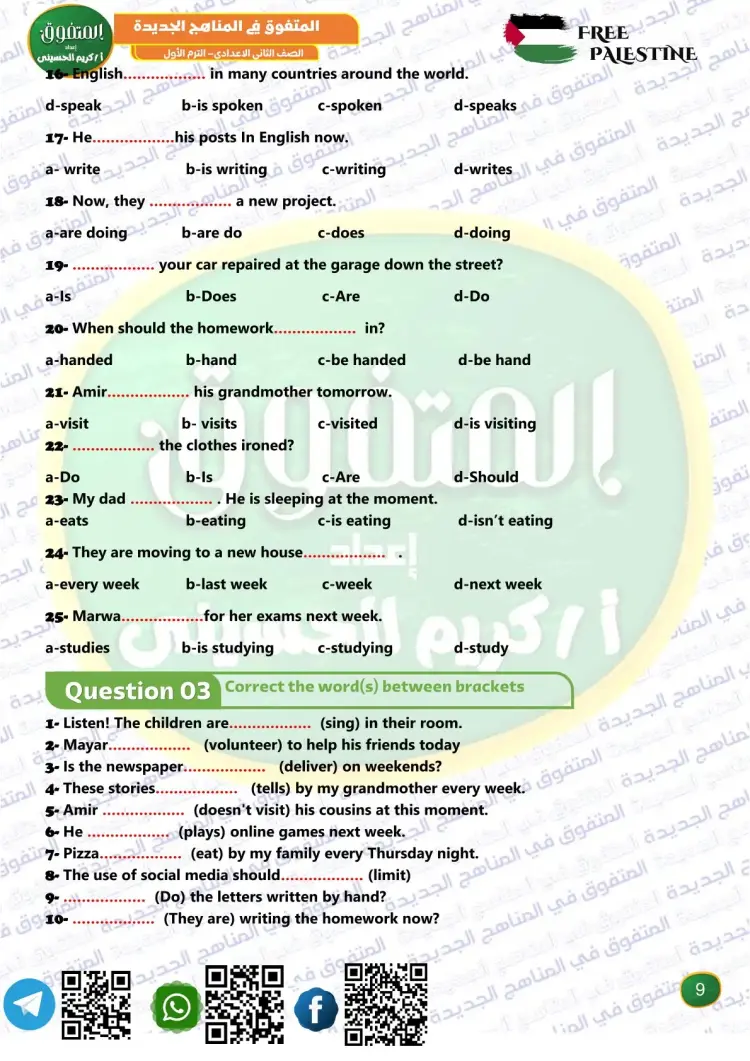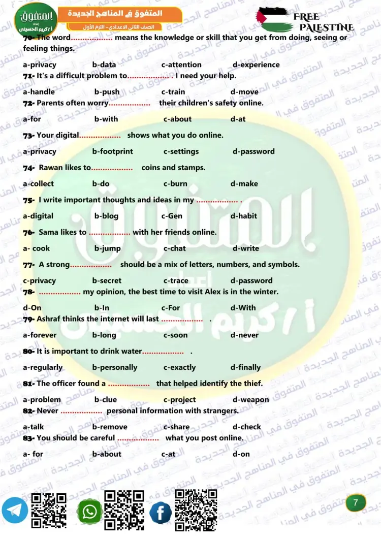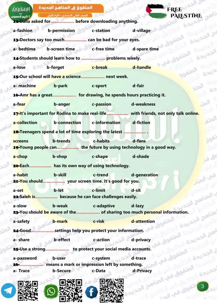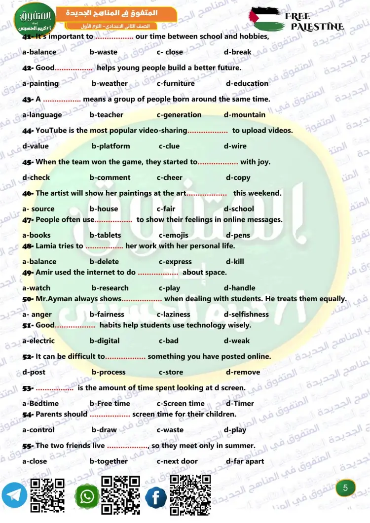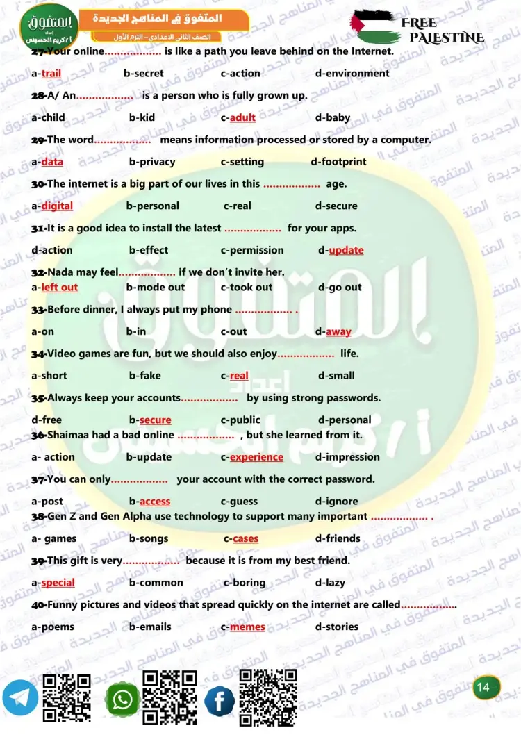 واشتملت مذكرة مراجعة المتفوق لشهر أكتوبر في مادة اللغة الإنجليزية لطلاب الصف الثاني الإعدادي بالترم الأول للعام 2025 2026، على بنك أسئلة متنوع مجاب عنه، منه ما يلي: