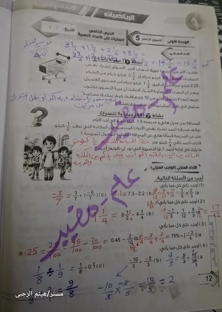 حل الأداء الصفي وواجب وتقييم الأسبوع الخامس رياضيات للصف الأول الإعدادي ترم أول 2026