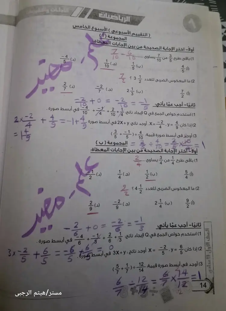 لمتابعة باقي أسئلة وإجابات ملف حل الأداء الصفي وواجب وتقييم الأسبوع الخامس رياضيات للصف الأول الإعدادي ترم أول 2026 تابع الصور التالية:
