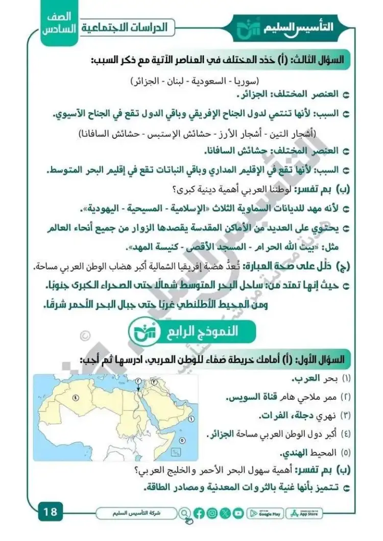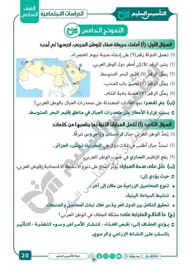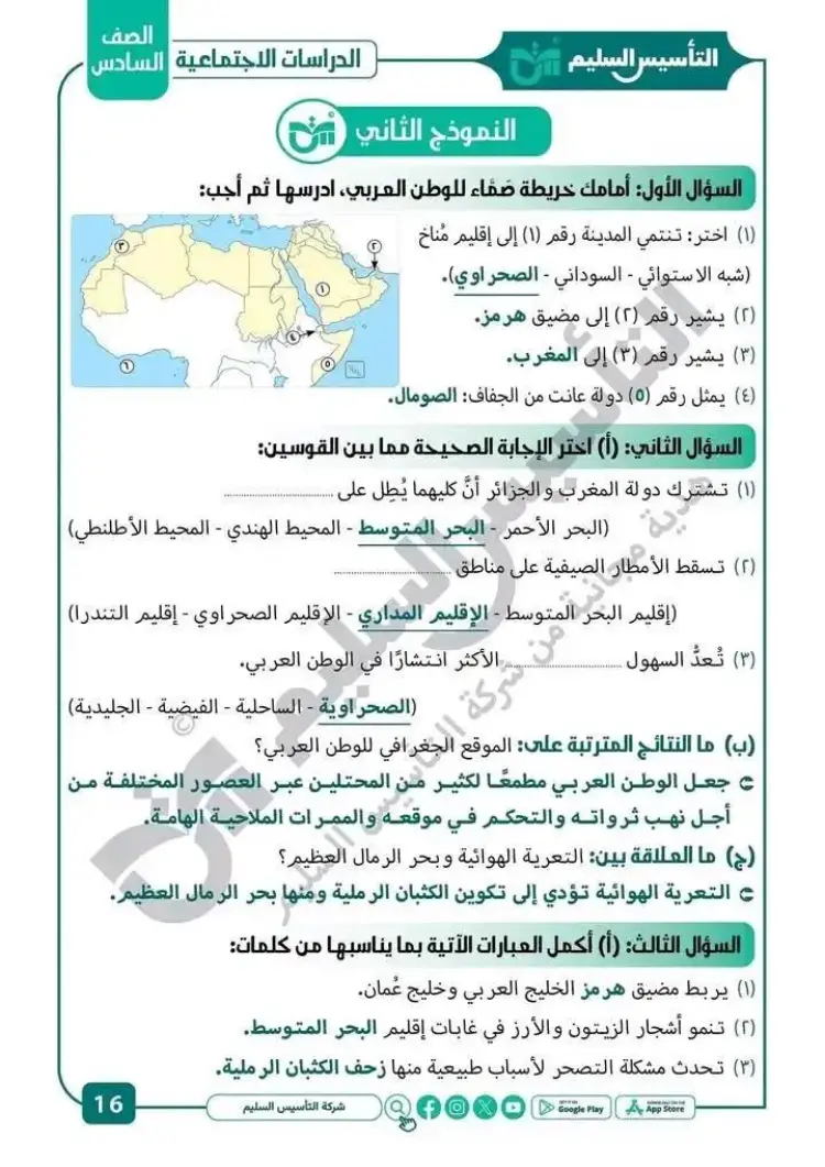 جاءت أسئلة امتحانات شهر أكتوبر دراسات للصف السادس الإبتدائي 2025 على النحو التالي: