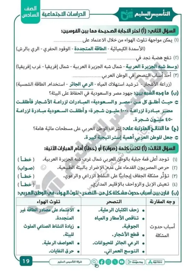 اكتب كلمة (صواب) أو (خطأ) أمام العبارات الآتية: