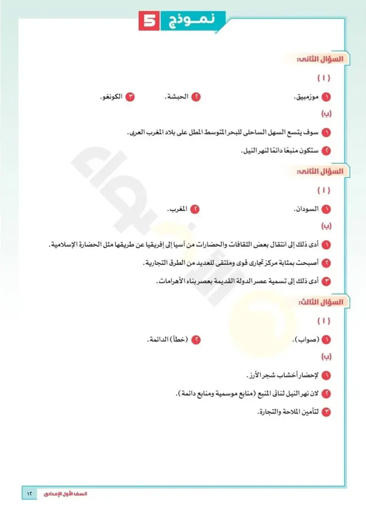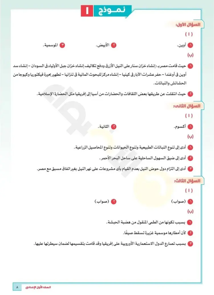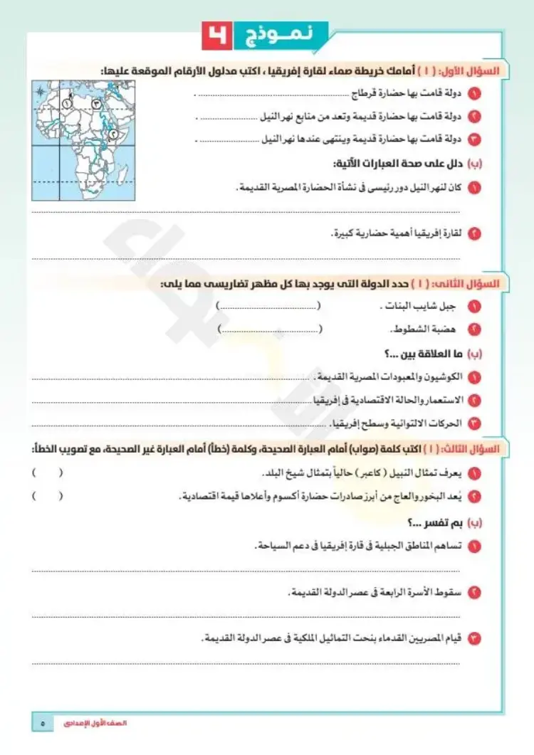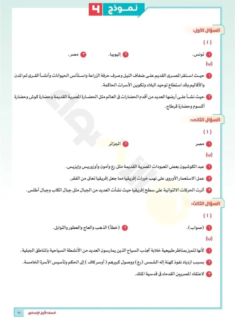 نماذج امتحانات الأضواء شهر أكتوبر دراسات الصف الأول الإعدادي بالإجابات 2025