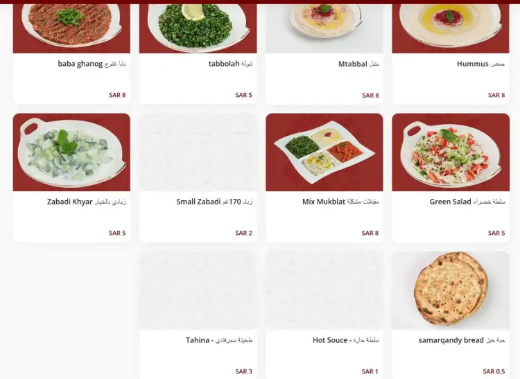 طحينة سمرقندي: طبق طحينة جانبي بسعر 3 ريال.