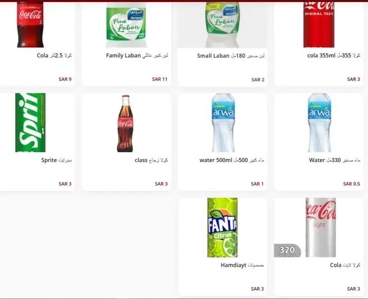كولا 355 مل: كولا بحجم العلبة بسعر 3 ريال.