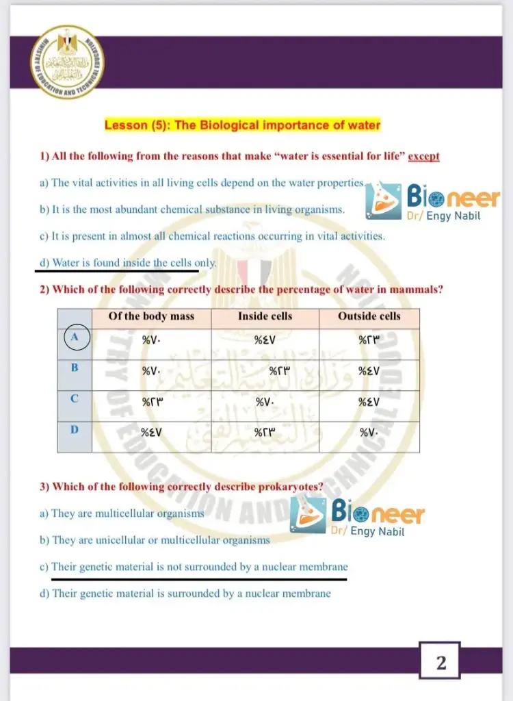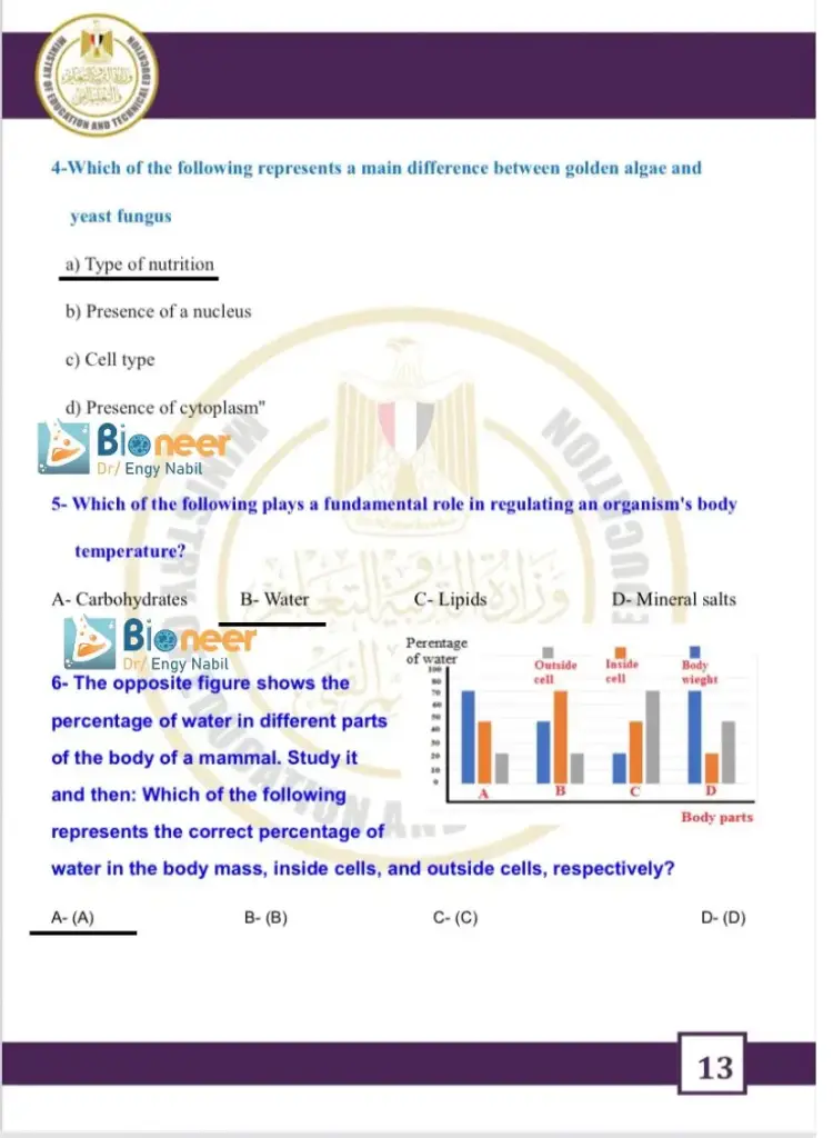 كما ورد في حل الأداء الصفي وواجب وتقييم الأسبوع الخامس علوم متكاملة لغات للصف الأول الثانوي 2026 عدد من الأسئلة والإجابات كان منها الآتي: