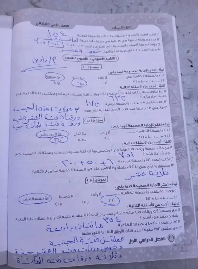 يشمل حل التقييم الأسبوعي رياضيات ثانية ابتدائي الأسبوع السادس ترم أول 2026 عدد كبير من الأسئلة، والتي أجاب عنها المدرسون، ومنها ما يلي:
