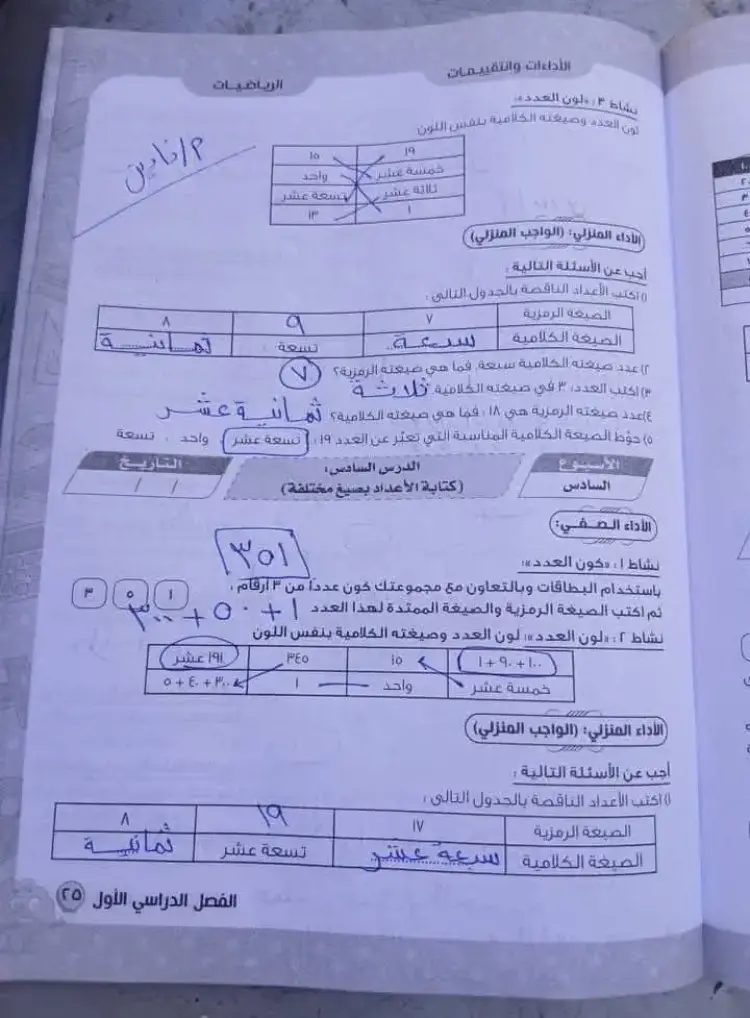 حل الأداء الصفي رياضيات ثانية ابتدائي الأسبوع السادس ترم أول 2026