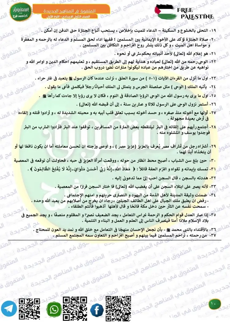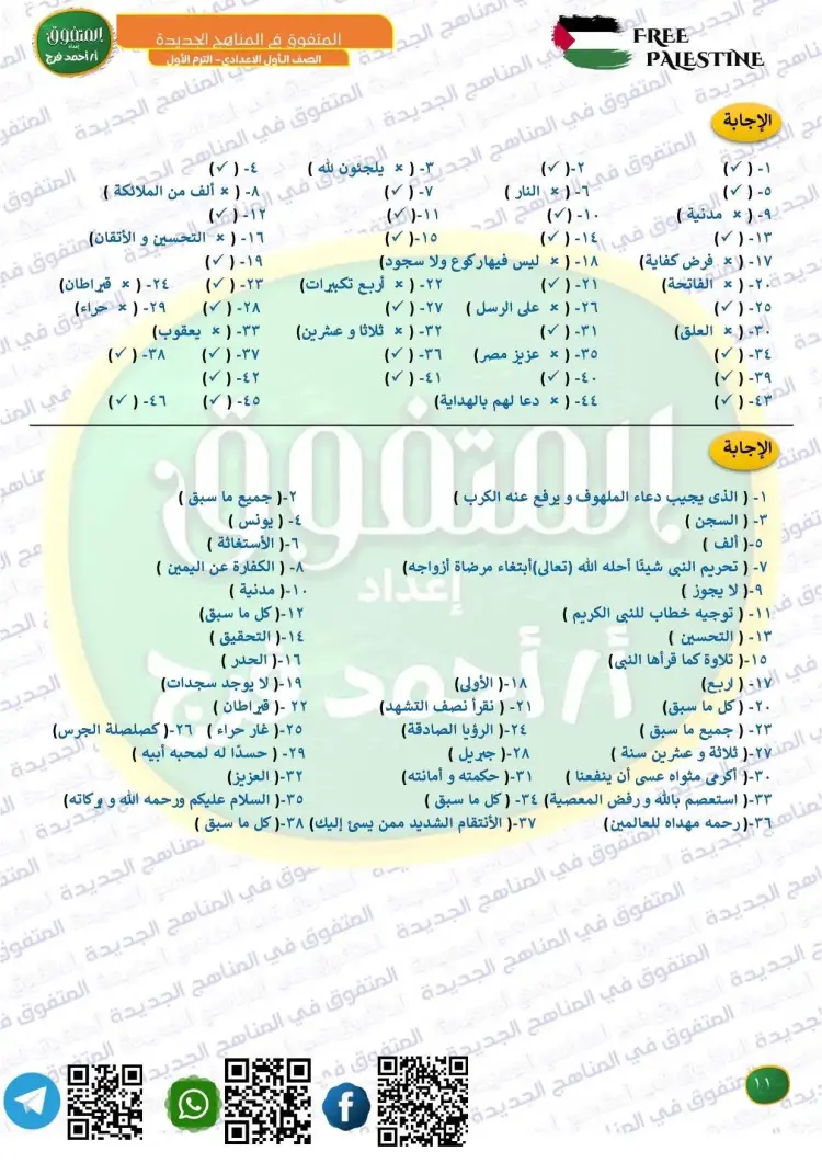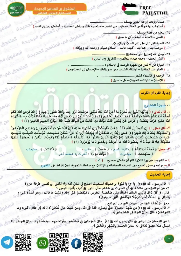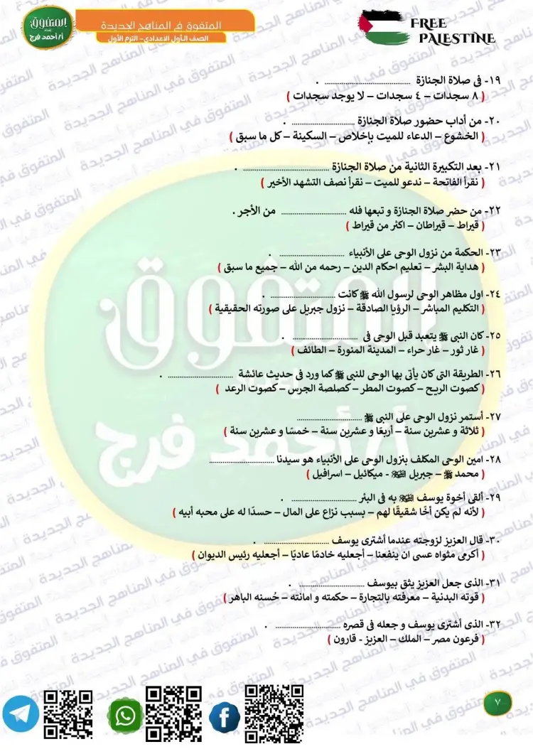 جاءت أسئلة المتفوق دين للصف الأول الإعدادي شهر أكتوبر 2025 2026 على النحو التالي: