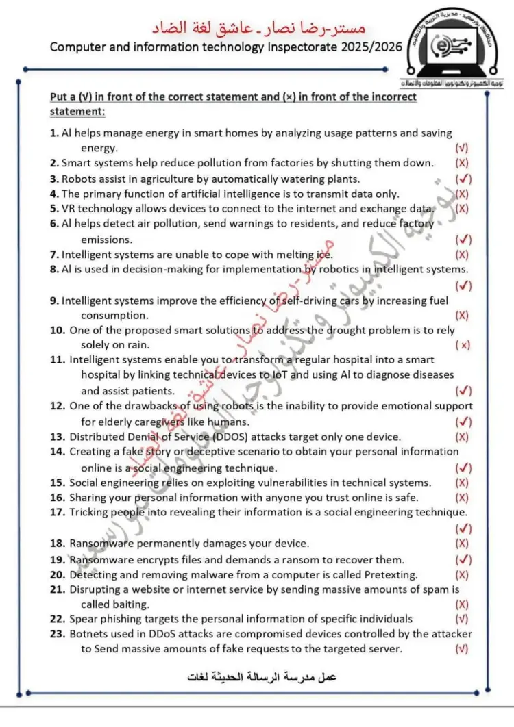 مراجعة شهر أكتوبر ict تانية إعدادي 2026