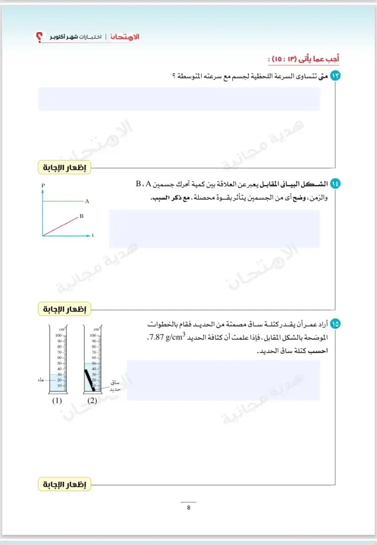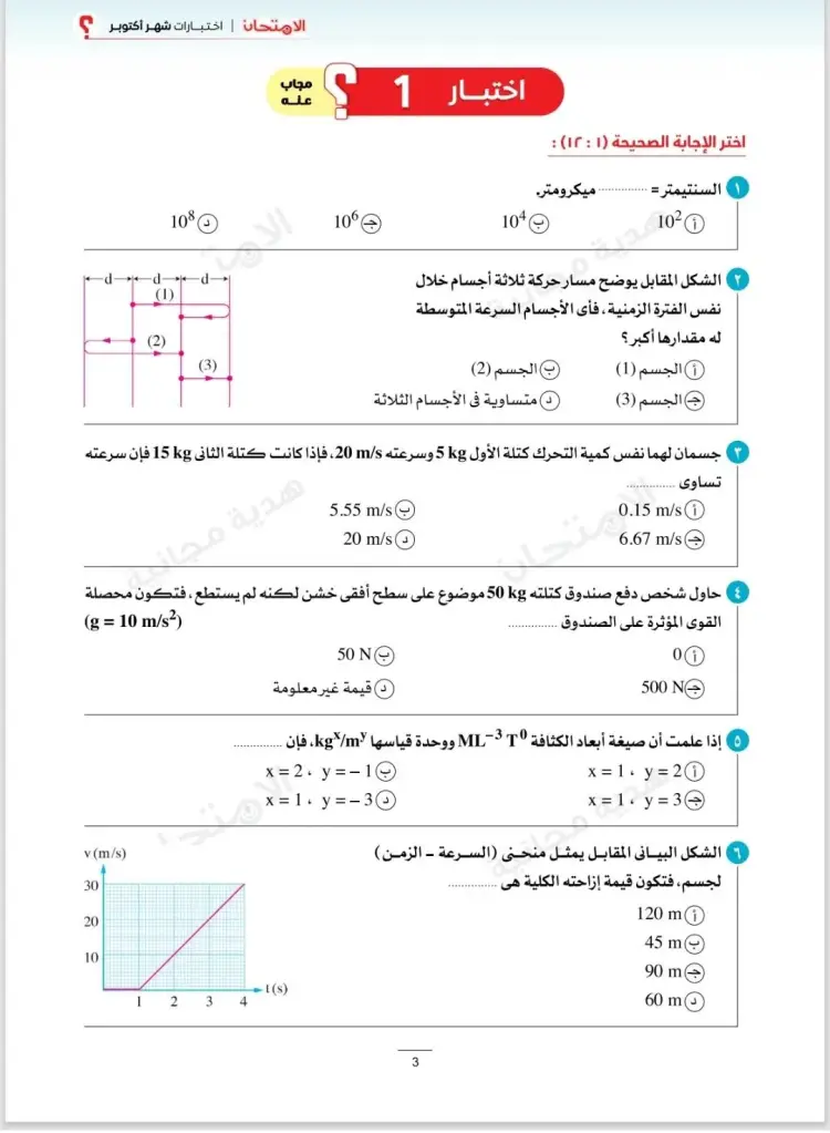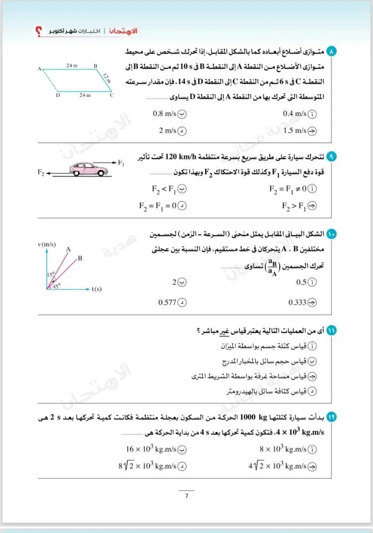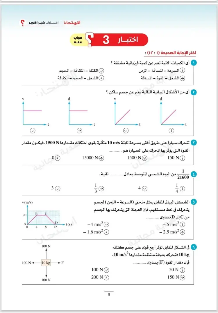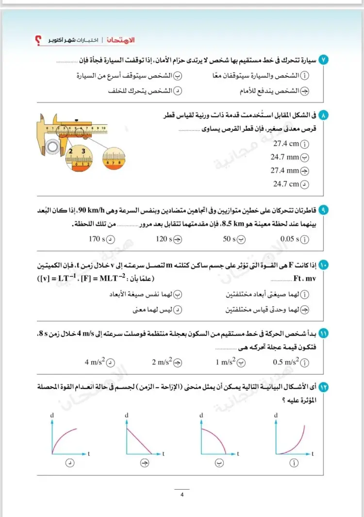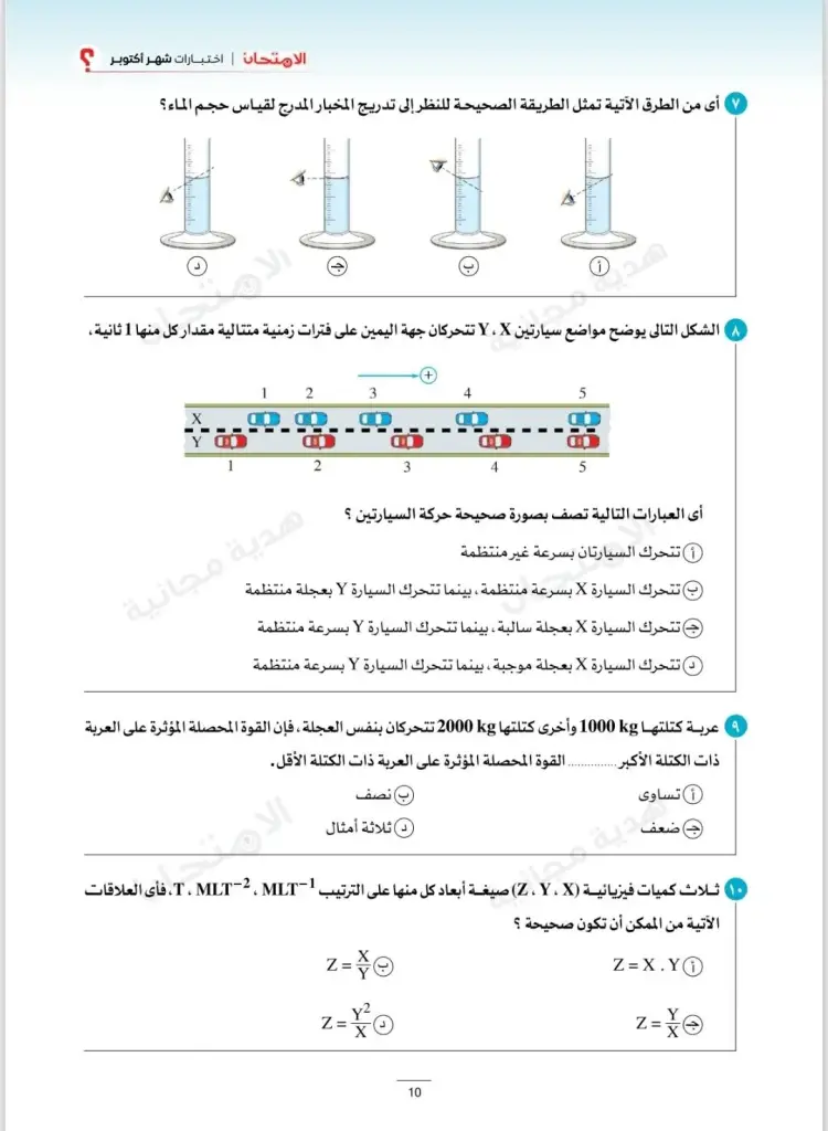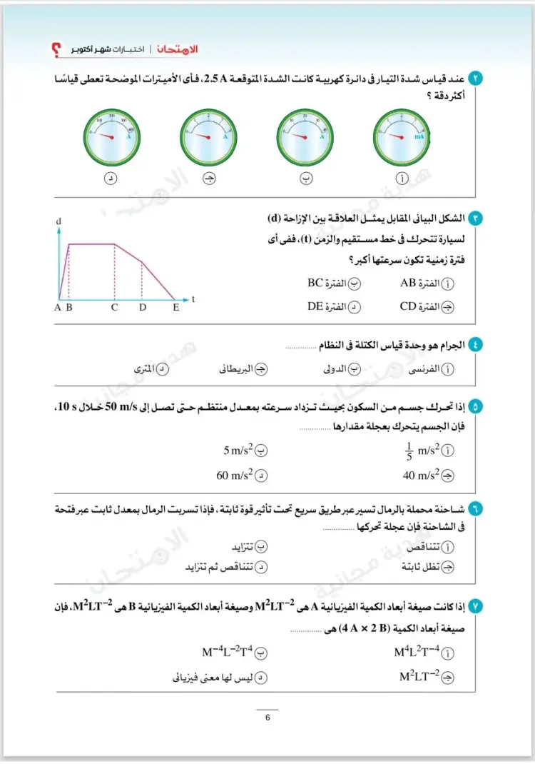 وتشمل نماذج امتحانات شهر أكتوبر في كتاب الامتحان فيزياء تانية ثانوي بالعام الدراسي 2025 2026، على العديد من نماذج الأسئلة منها: