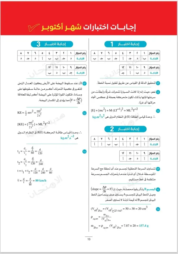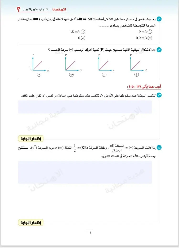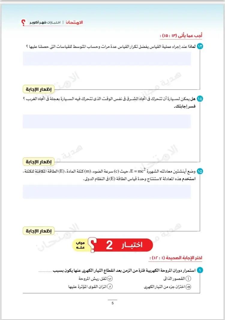 امتحانات كتاب الامتحان فيزياء تانية ثانوي شهر أكتوبر 2026 بالإجابات