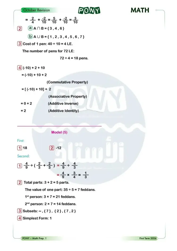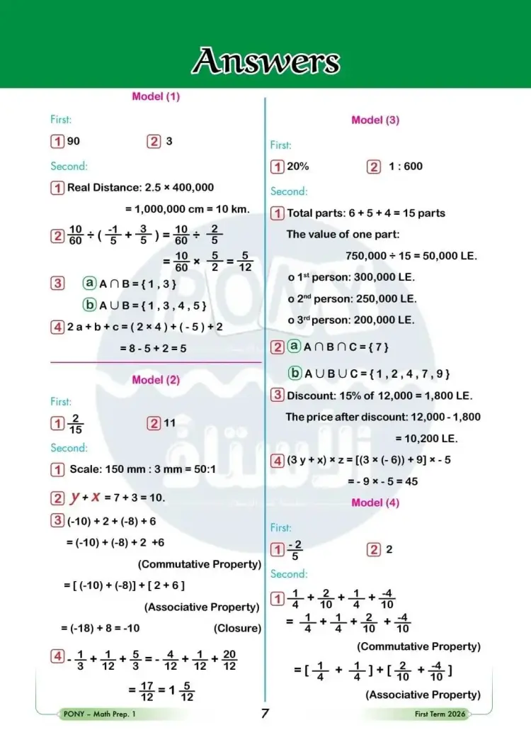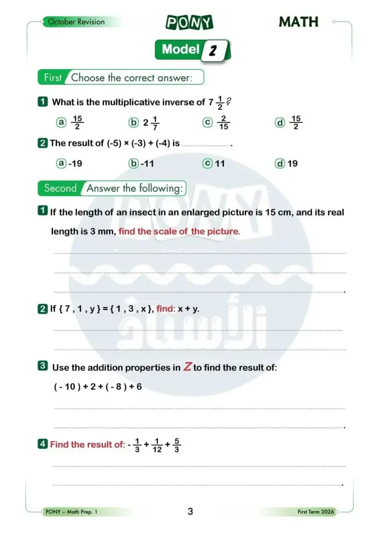 ينشر «شبابيك» نماذج امتحانات من كتاب بوني لمقرر شهر أكتوبر في مادة الرياضيات باللغة الإنجليزية Math لطلاب الصف الأول الإعدادي لغات، بالفصل الدراسي الأول للعام 2025 2026.