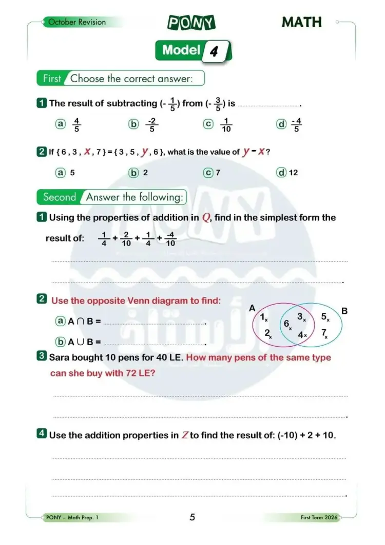 وقد أعد كتاب بوني في مادة math نماذج امتحانات لطلاب الصف الأول الإعدادي لغات عن مقرر شهر أكتوبر للعام الدراسي 2025 2026، وفقا للمناهج الجديدة واشتملت على العديد من الأسئلة منها: