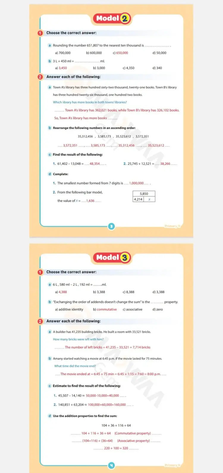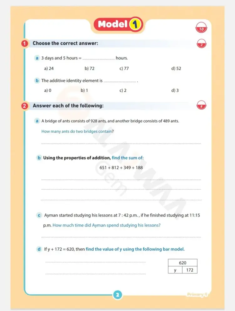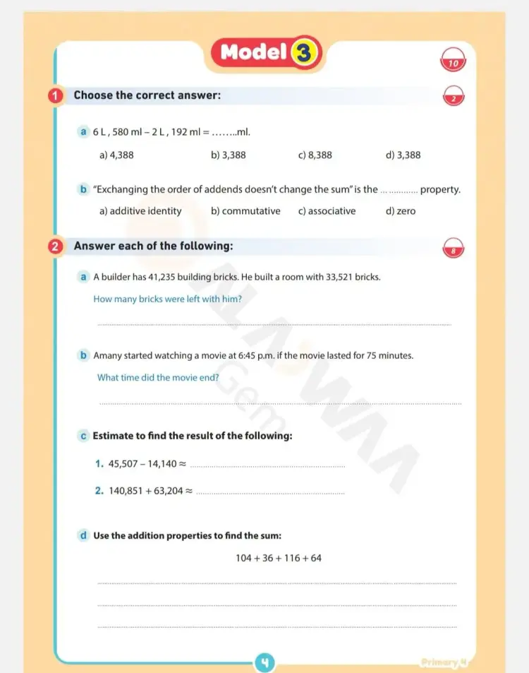 وتشمل نماذج امتحانات شهر أكتوبر في كتاب الأضواء ماث رابعة ابتدائي بالعام الدراسي 2025 2026، على العديد من نماذج الأسئلة منها:
