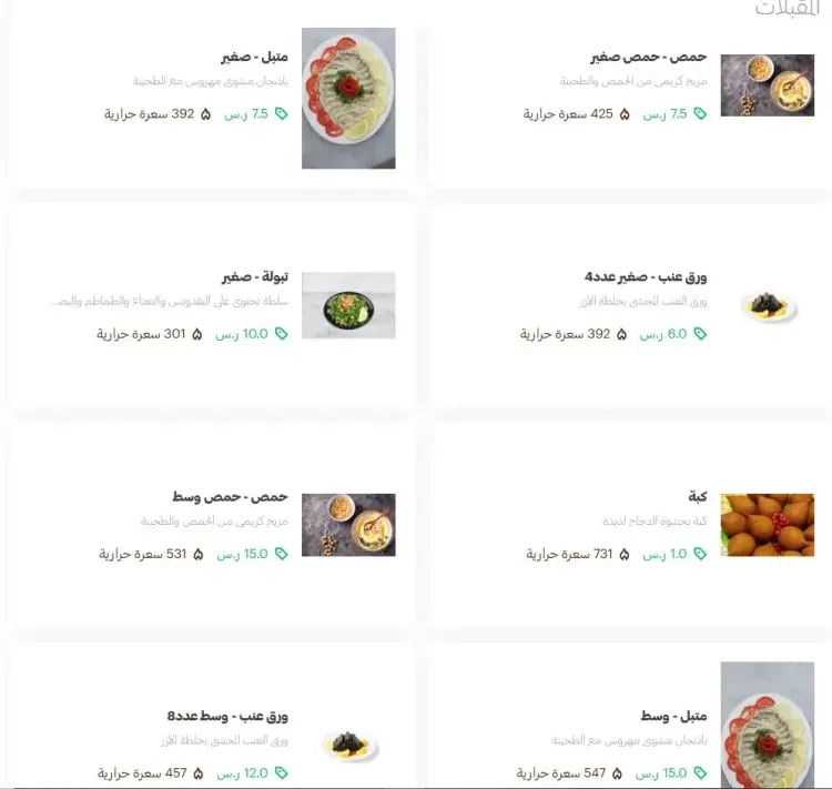 • حمص (صغير): 7.5 ر.س (425 سعرة حرارية)