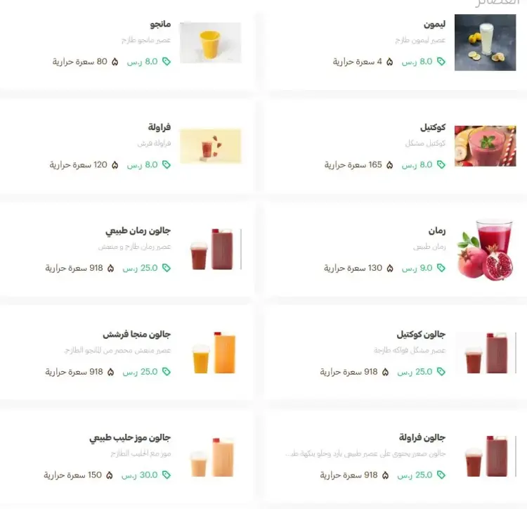 • كوب عصير مانجو: 8.0 ر.س (80 سعرة حرارية)