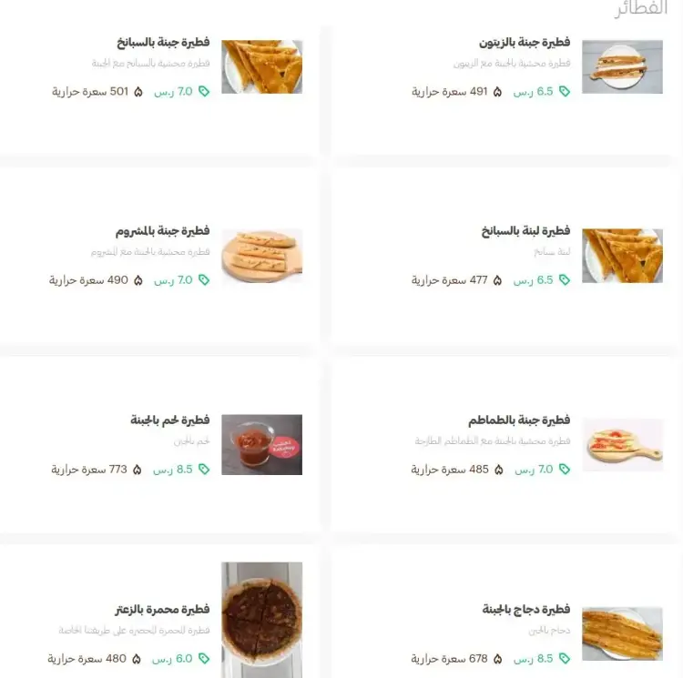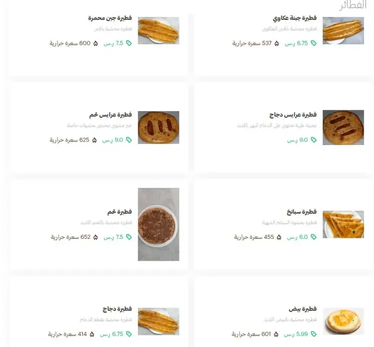 • فطيرة لبنة بالسبانخ: 6.5 ر.س (477 سعرة حرارية)