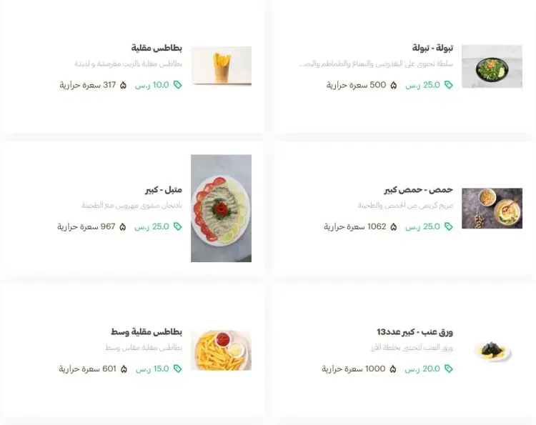 • تبولة (صغيرة): 10.0 ر.س (301 سعرة حرارية)