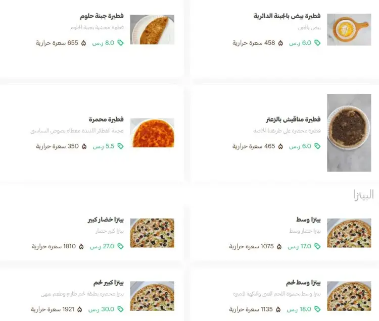 • فطيرة مناقيش بالزعتر: 6.0 ر.س (465 سعرة حرارية)