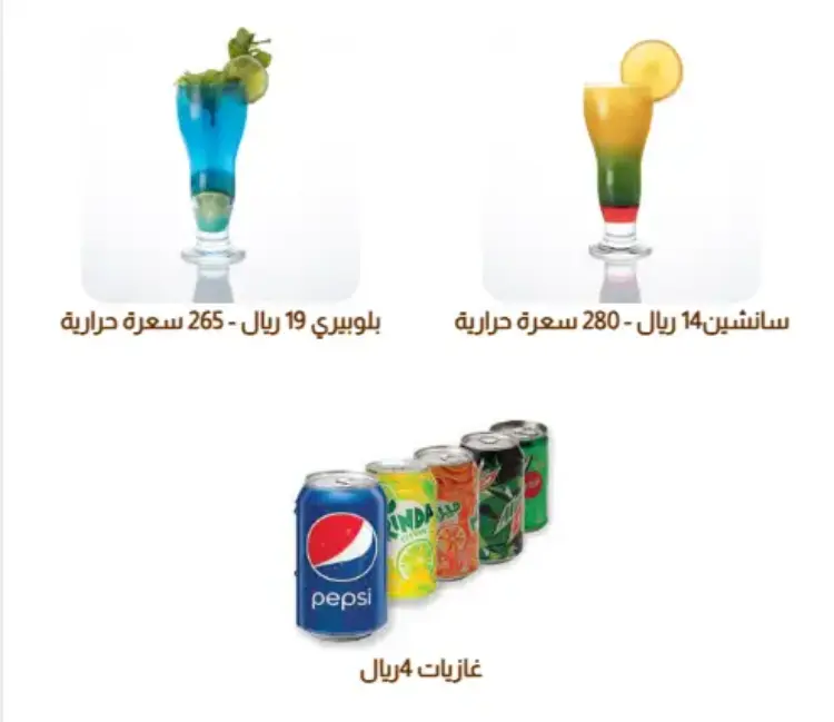 مشروب سانشين يحتوي على 280 سعرة حرارية بسعر 14 ريال.