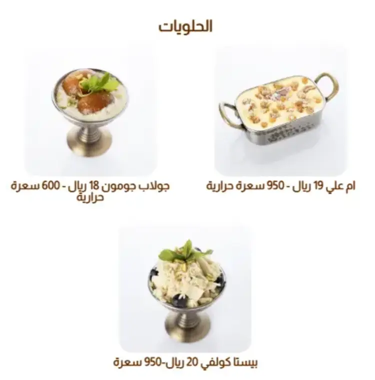 طبق ام علي تحتوي على 950 سعرة حرارية بسعر 19 ريال.