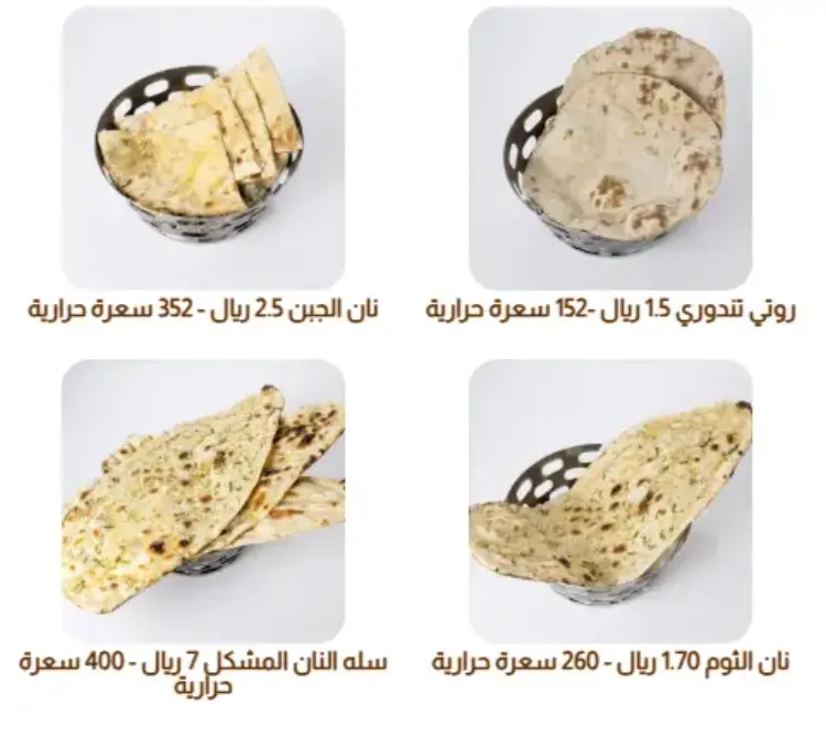 طبق نان يحتوي على 224 سعرة حرارية بسعر 1 ريال.