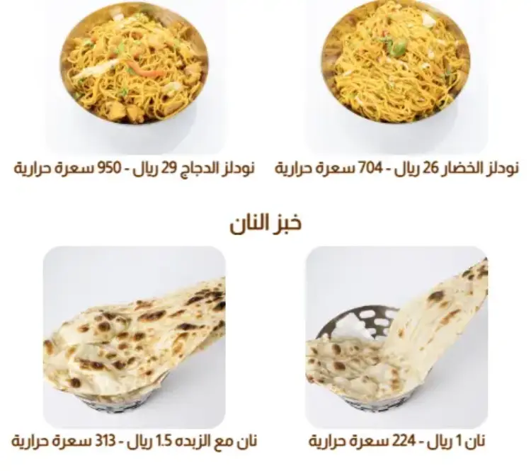 طبق نودلز الدجاج يحتوي على 950 سعرة حرارية بسعر 29 ريال.
