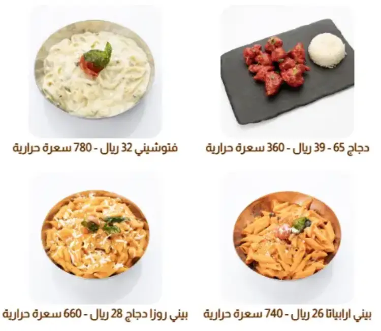 طبق بيني روزا دجاج يحتوي على 660 سعرة حرارية بسعر 28 ريال.