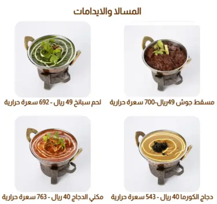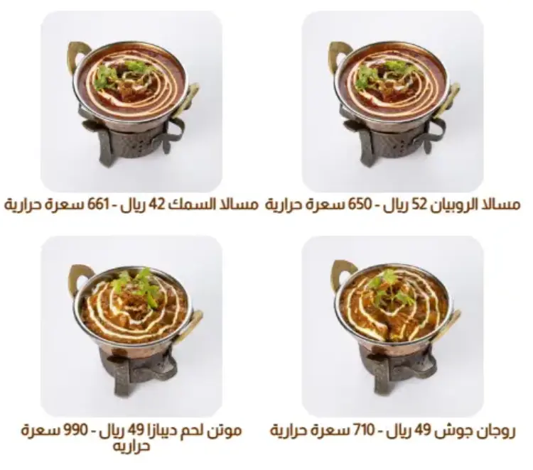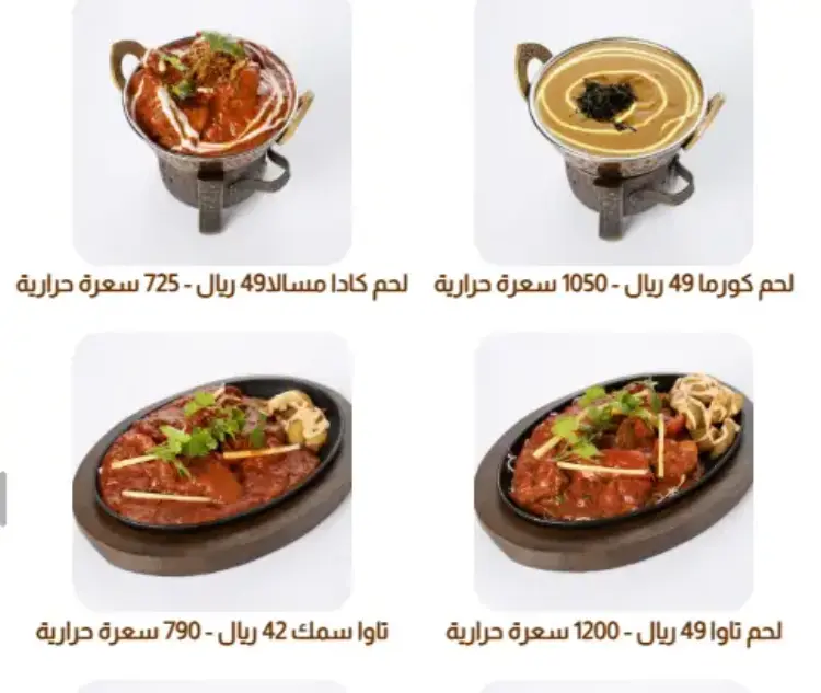 طبق لحم كورما يحتوي على 1050 سعرة حرارية بسعر 49 ريال.