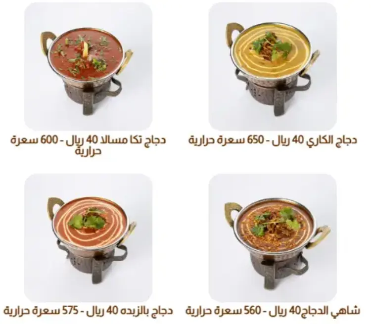 طبق دجاج الكاري يحتوي على 650 سعرة حرارية بسعر 40 ريال.