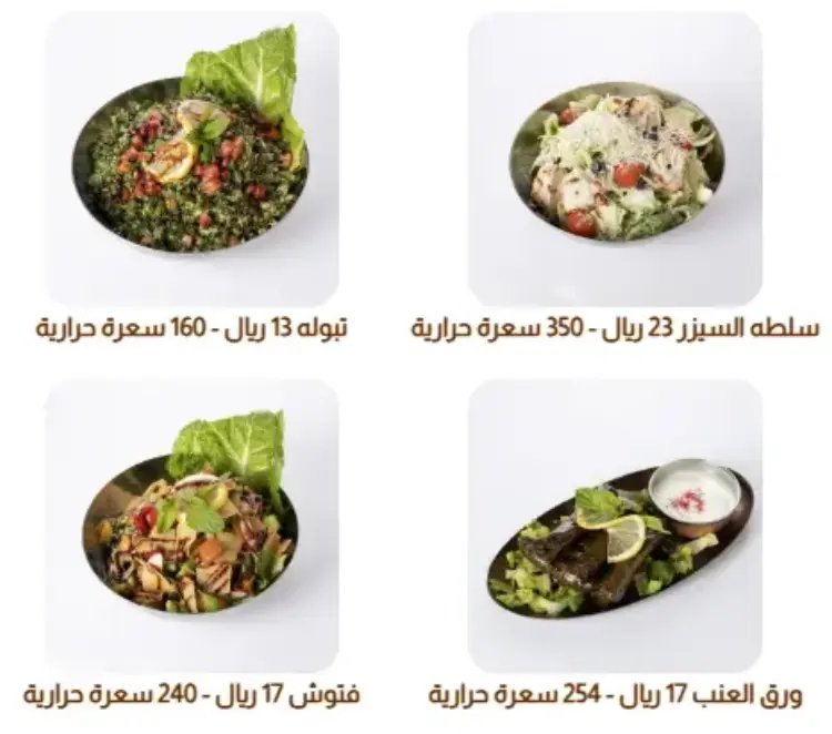 طبق تبوله يحتوي على 160 سعرة حرارية بسعر 13 ريال.